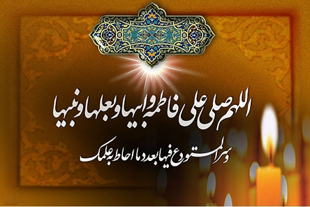 " اللهُمَ صلِ علی فاطمةَ وَ أَبیِها وَ بَعلِها وَ بَنیها وَ السِّرِّ المُستَدَعِ فیها بِعَدَدِ ما أحَاطَ بِهِ عِلمُک "